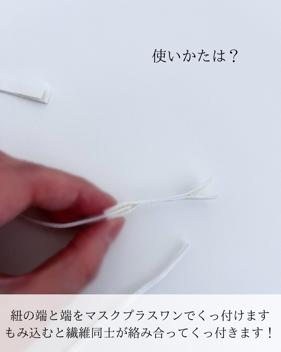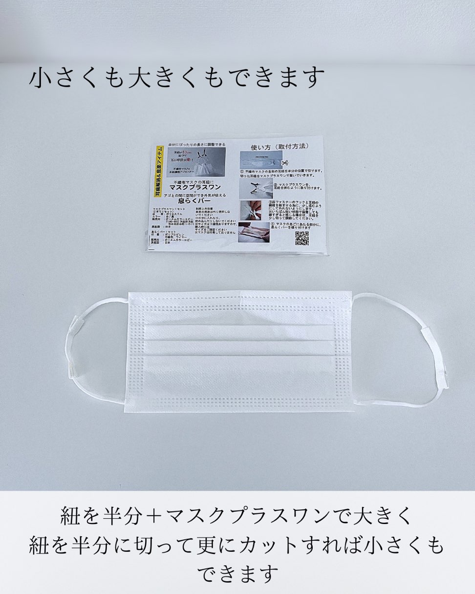 マスクの紐を半分のところで切ってマスクプラスワンを取り付けます。