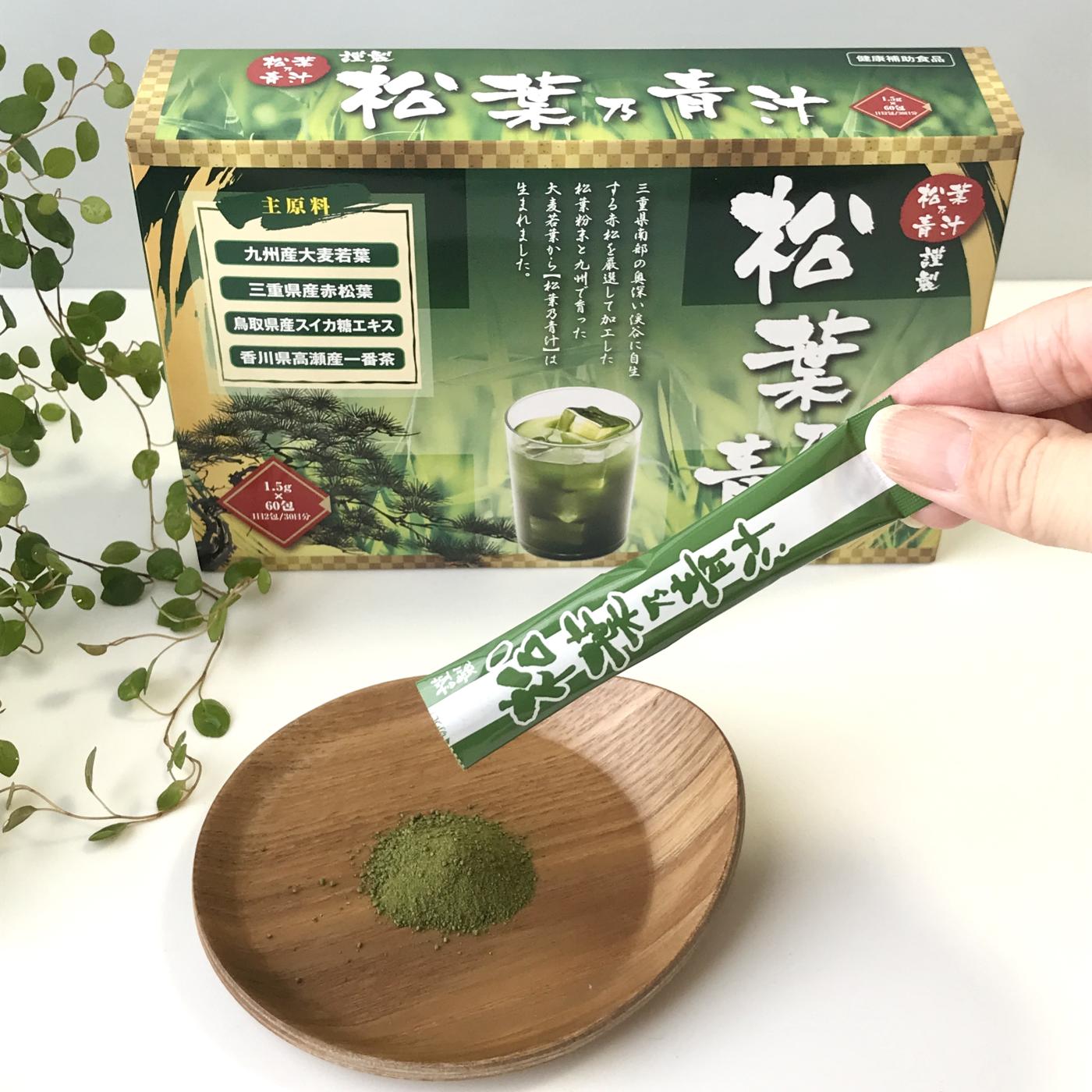 三重県産の赤松の松葉粉末と九州産大麦若葉でできた青汁です。