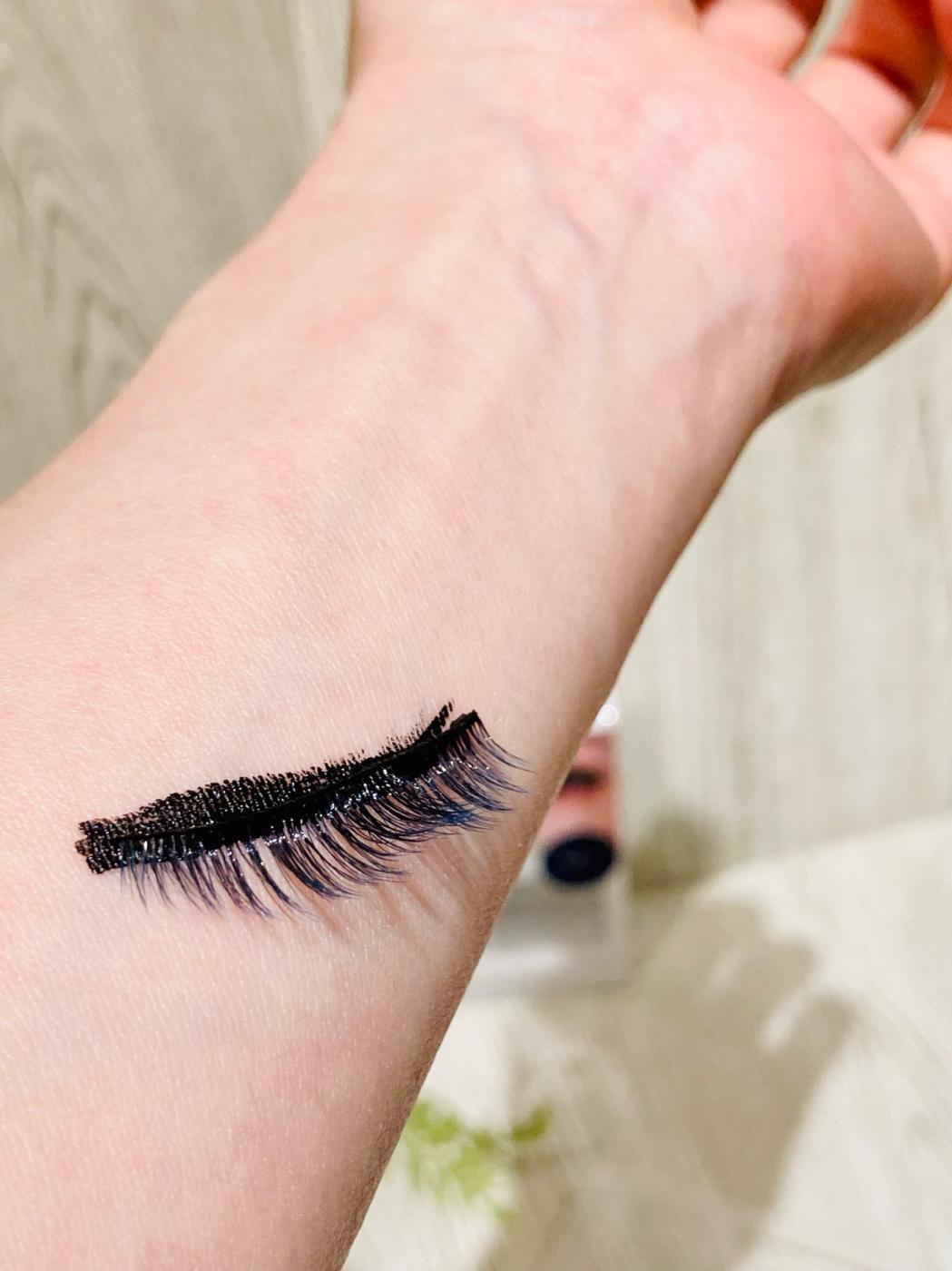 あえて腕にまつ毛を貼り付けてみました。アイライナーがないところには張り付かないので、最初はテクニックが必要かと思いますが、慣れたらこっちの方が良いですね。瞼への負担が少ないです。のりの重さや違和感が無いのと、外す時も、べりっとはがす感じでは無いんです。ノリよりお肌に優しい気がします。毎日つけても1.5ヶ月持つ耐久性!それでいて1500円程度とはコスパ良い!専用アイライナーが無いとまつ毛がつけられないので、アイライナーを長くもたせるために、