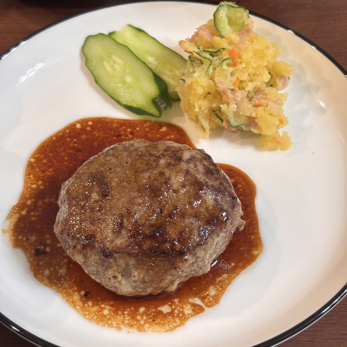 少し甘めの味付けが肉肉しいハンバーグと相性抜群でした🥰