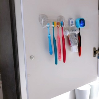 鏡の裏に吊り下げて歯ブラシを収納しているので、