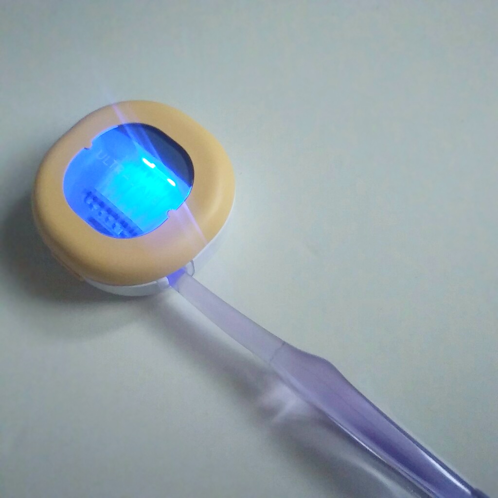 機能はとてもシンプルで、歯ブラシは水気をよく切り、蓋を開けて歯ブラシを入れ閉じると自動で除菌がスタート。3分後に自動でオフになります。