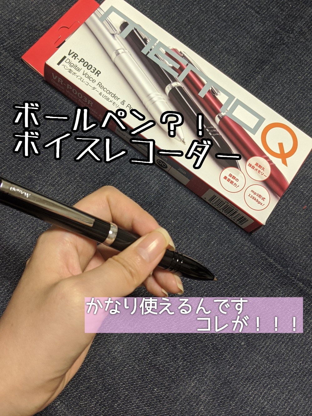 届いたときほんとにどっからどうみても普通のただのボールペンにしか見えなくて感動しました!普通に当り前ですがボールペンとして文字もスラスラかけますし、書きながら録音できるのが、学生だったら授業中に使うのも良しですし!
