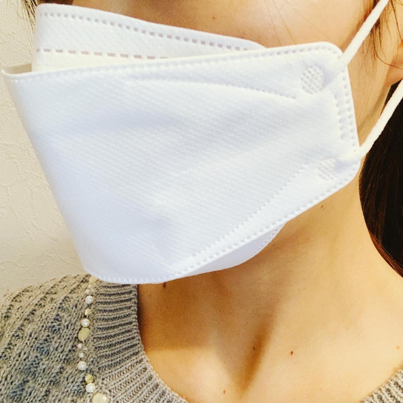 また、普段使っている不織布マスクはしっかり口まで付きますが、本品は柳葉型なのが特徴で口に付かないのも驚きました。
