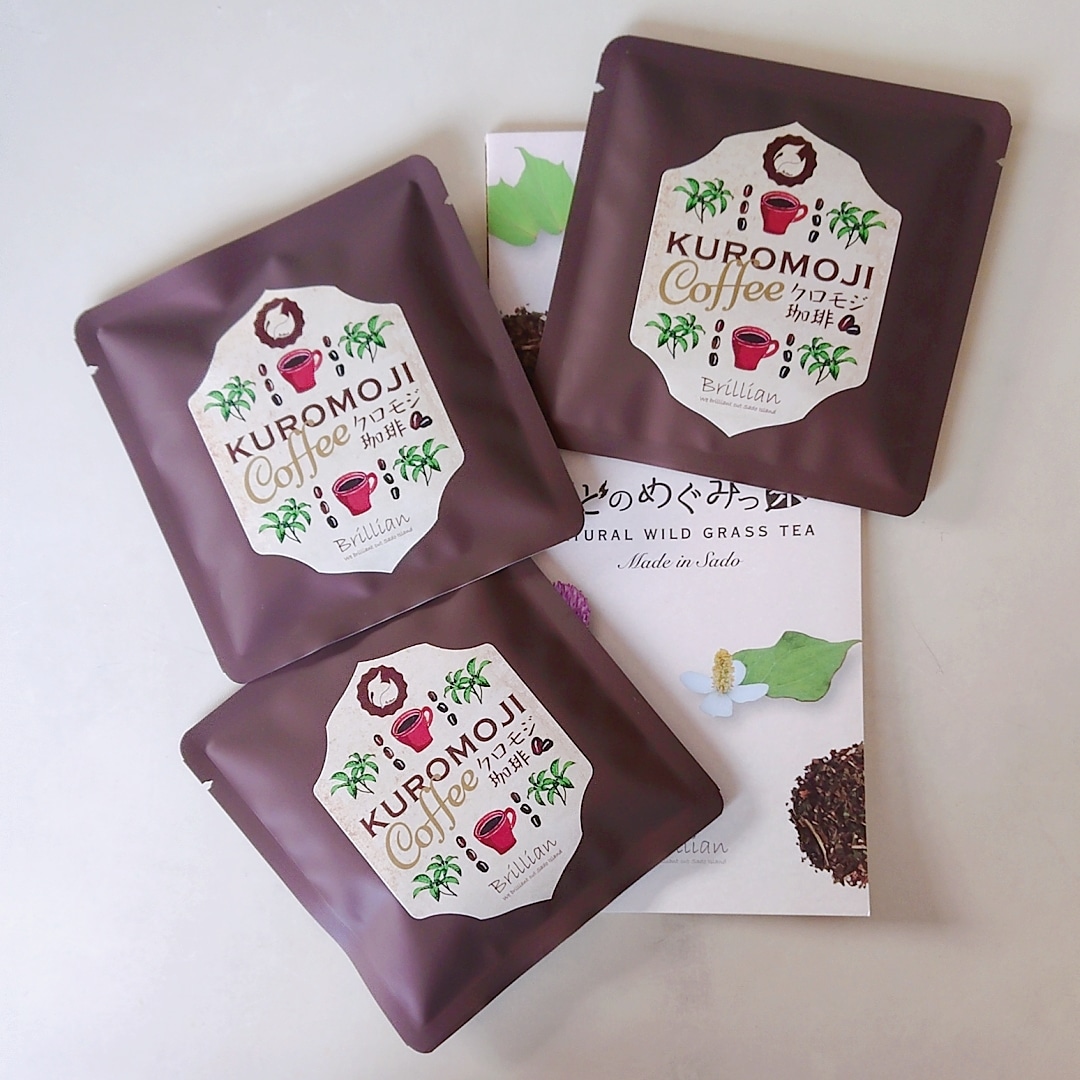 ドリップバッグの袋も可愛いクロモジ珈琲。
