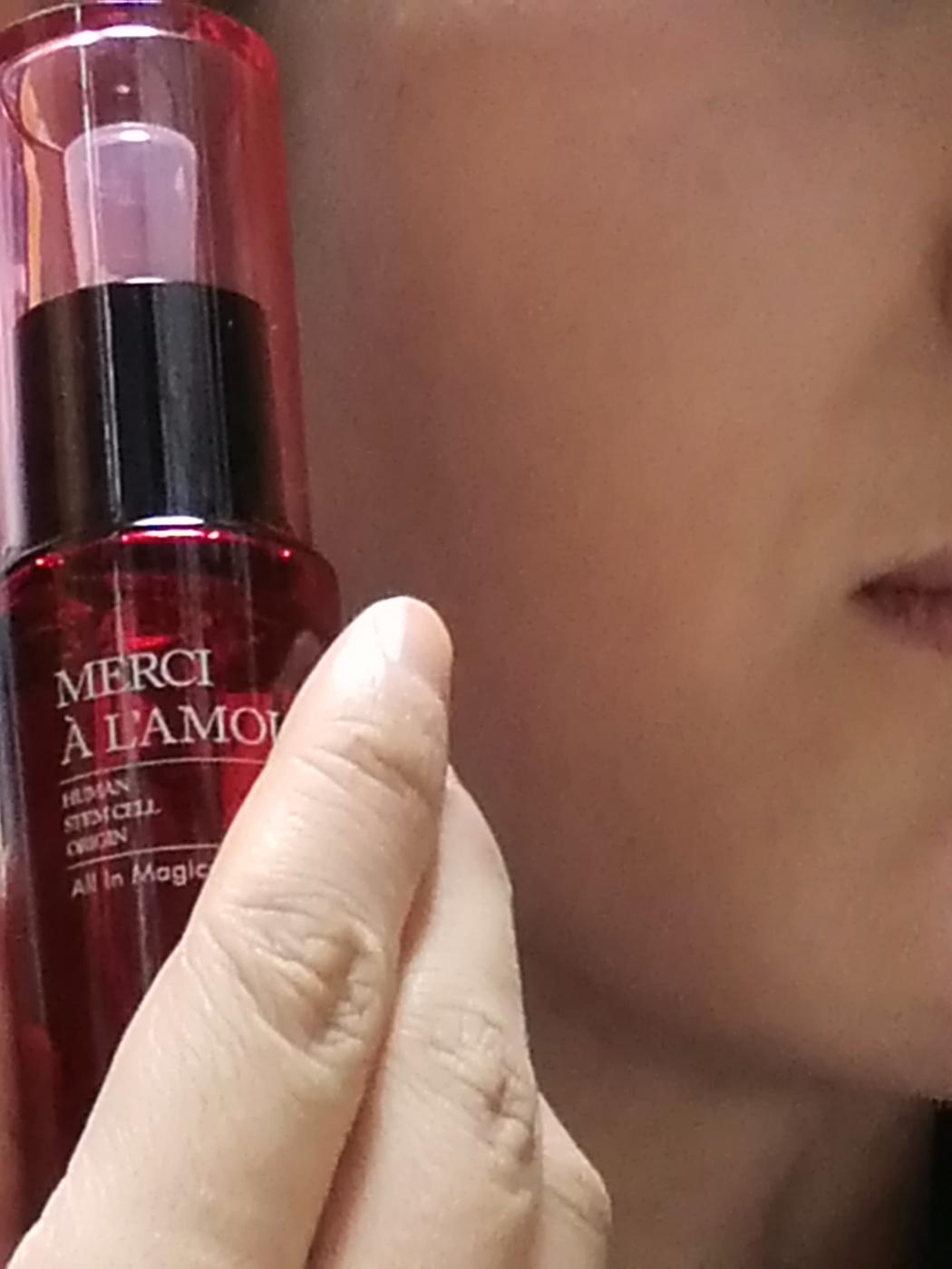 洗顔後のケアはこれ一本で大丈夫です。こちらは、ヒト幹細胞培養液エキスでとても手間がかからず有難い商品です。使用する前日にコーヒーを飲み過ぎて、とても具合が悪く鼻風邪みたいな症状でいました。鼻がカサカサしており肌荒れを起こしておりました。そんな中このヒト幹細胞培養液エキスを使用したらなんと肌荒れがすぐに治りました。なんて有難い商品でしょうか。これ一本だけなので具合が悪かったのでとても嬉しかったです。ボトルのデザインも良いなぁ~と思っておりましたボトルだったので気持ちが上がりました。無色透明でさらさらした商品なので、お肌の弱い私でもストレスなく使用できました。とにもかくにもこれ一本は非常に有難いです。赤いボトルが可愛いのと小ぶりなサイズも嬉しいです。中身の見えるスケルトンな感じでとても綺麗で癒されました。