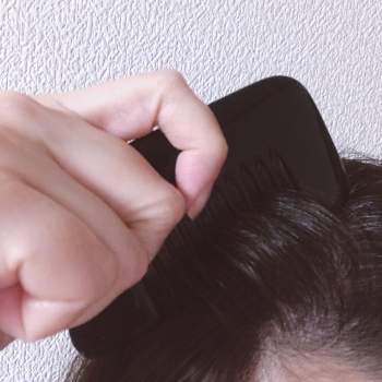 オデコ側から櫛を小刻みに前後させながら首の後ろまで流すのを繰り返し、頭皮に刺激を与えてゆきます。
