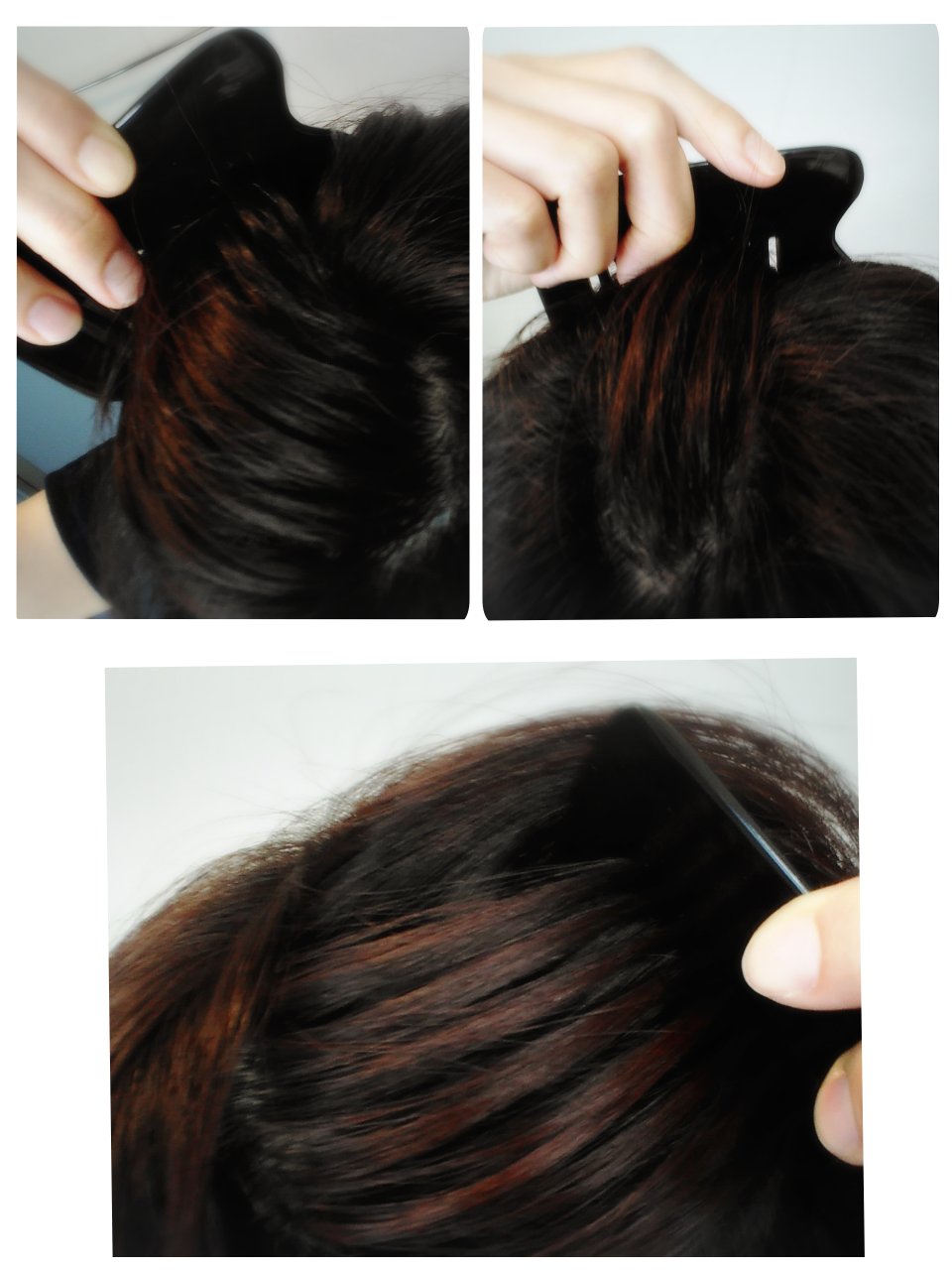 薬用育毛剤メリディアンを頭皮に浸透させるように育毛かっさを使用して頭皮にクルクル、ジグザグと頭皮を軽くこすります。