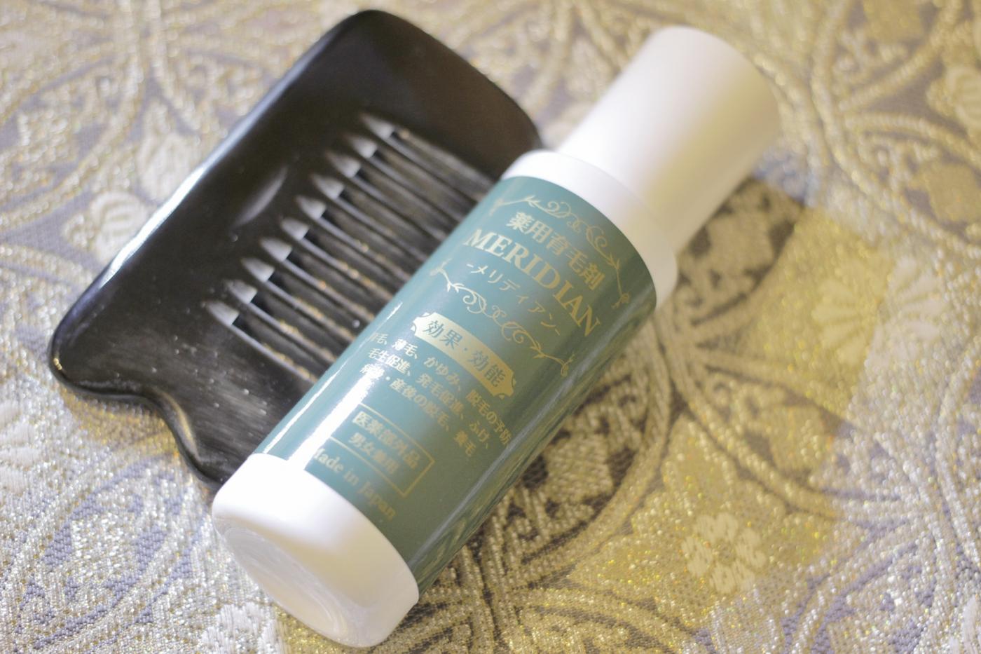 薬用育毛剤メリディアンと櫛型かっさプレートがセットになっています*