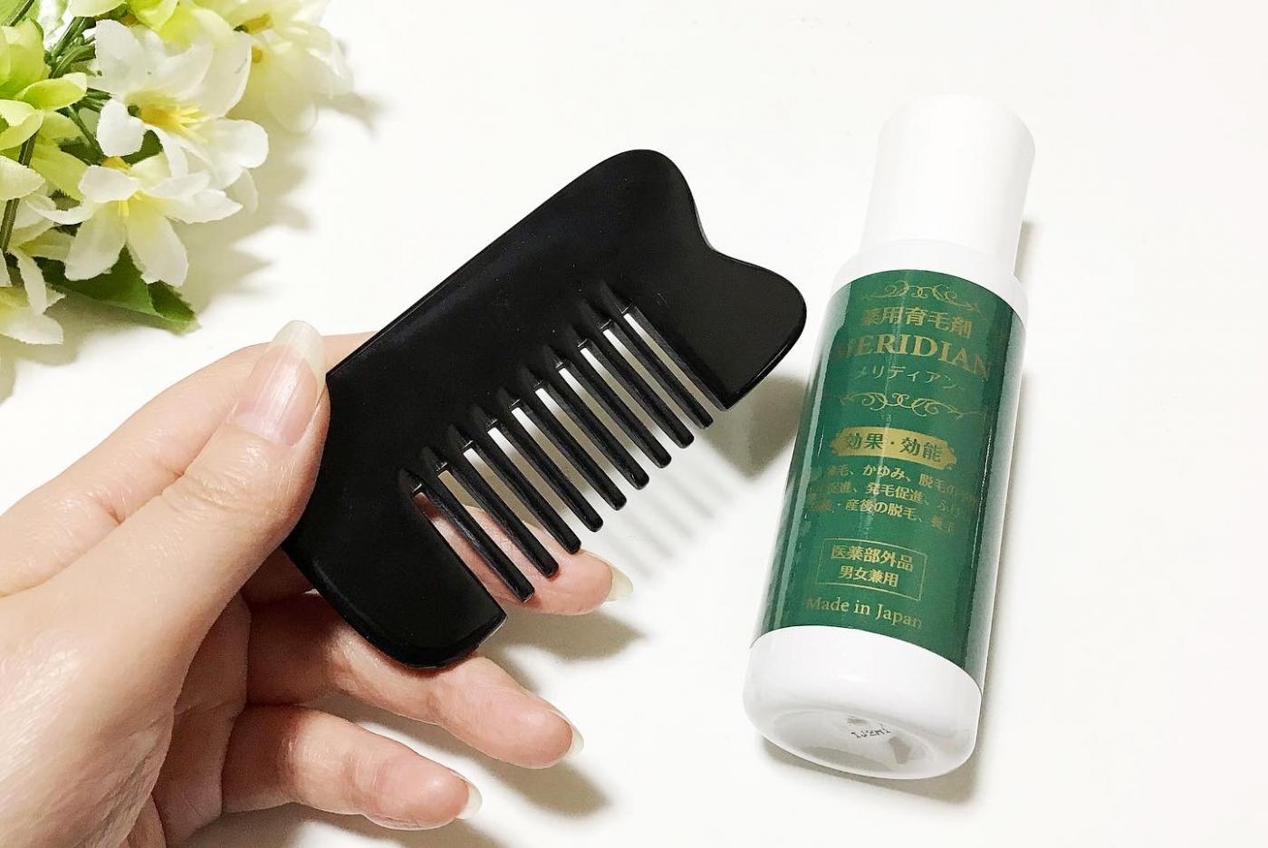 メリディアンショップ 育毛かっさスターターセット(薬用育毛剤メリディアン&櫛型かっさプレート)を使ってみました