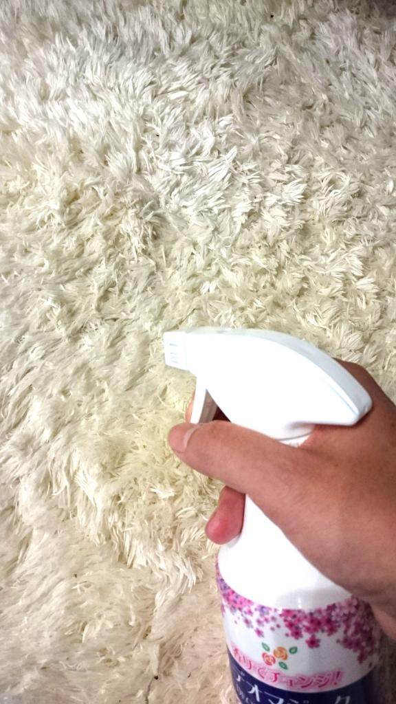 そして、ラグに失敗することもあるのですが、大きなラグでなかなか洗えないのでしっかり掃除して、またスプレーをしゅっ。