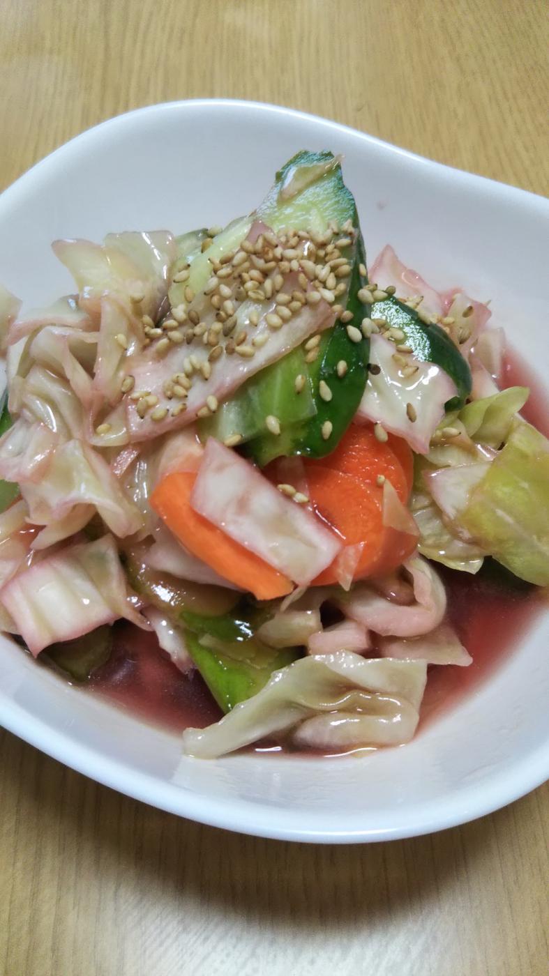 ナムルも色々な野菜をジップロックに入れハイビスカスすし酢、ごま油を加えて揉み込むだけで
