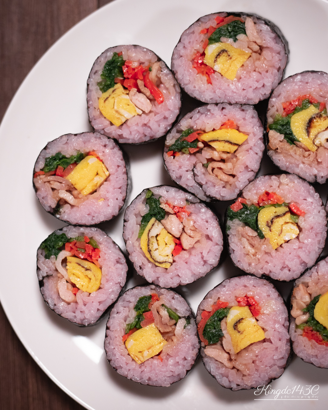 ハイビスカスローゼルすし酢を使ってルビー色の海苔巻きを作りました♪