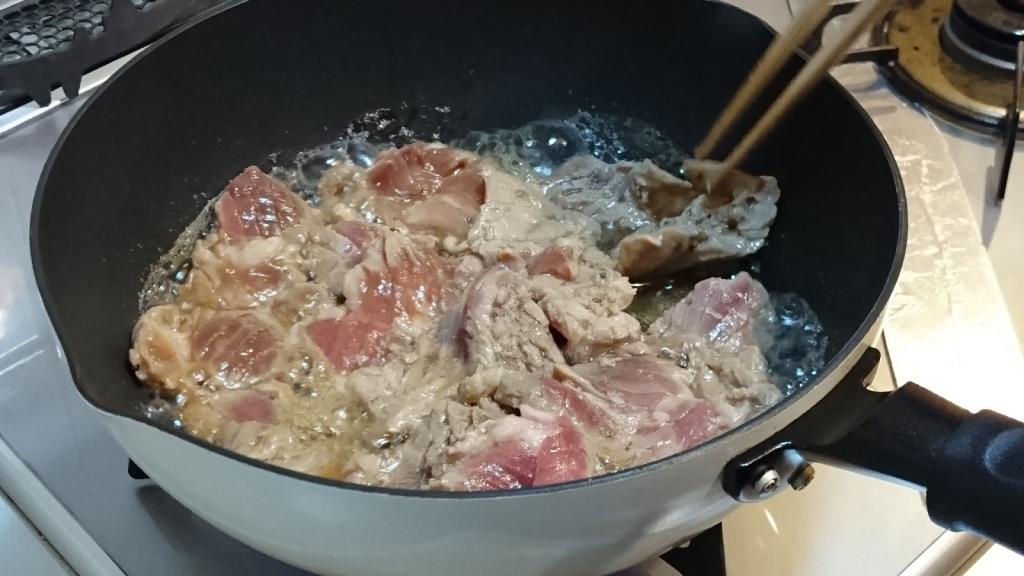 タレがお肉に全て絡むまで煮きります。
