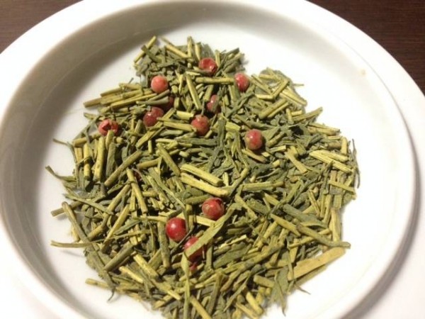見た目は緑茶にピンクの粒が入っているという印象ですが