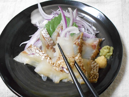 1パックは2〜3人前で、スライスされた鯛が10枚。