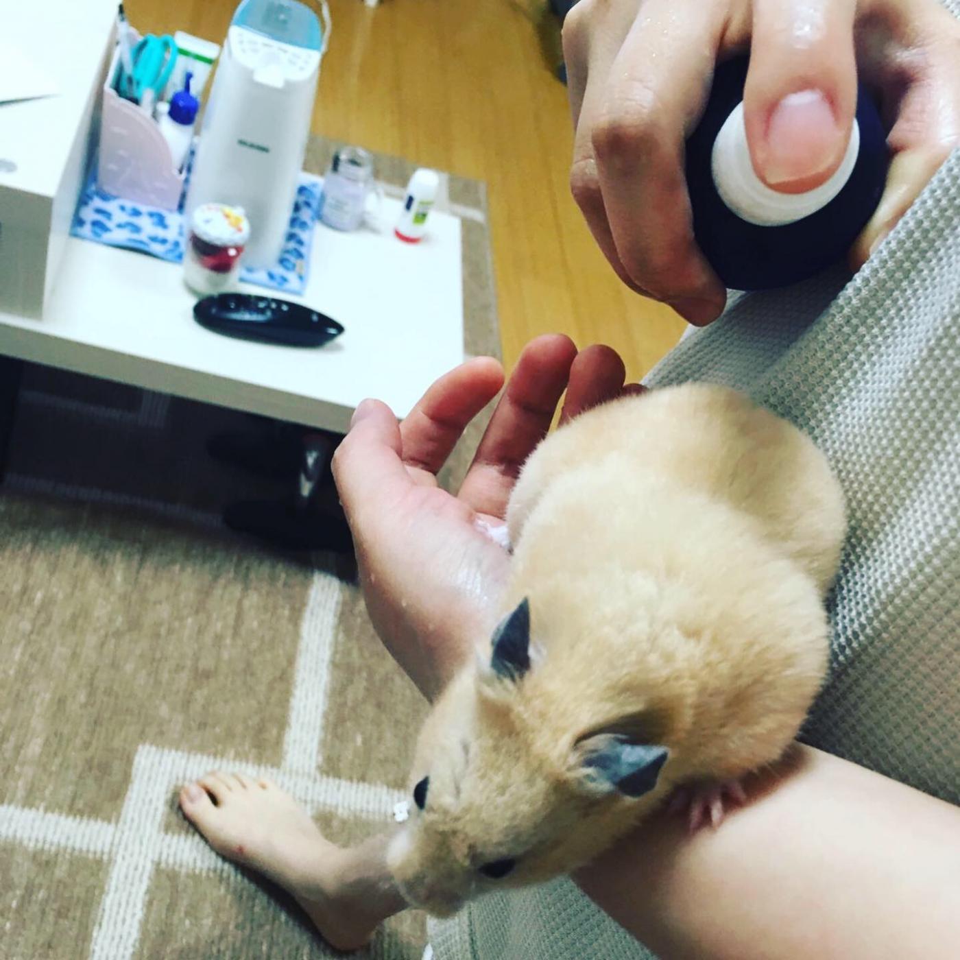 そしてブラッシングの時にハムスターの身体にシュッ!としてみました。
