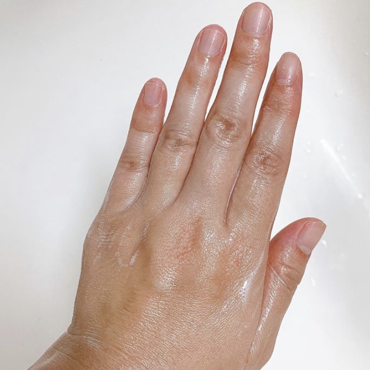 少しオレンジかかった色味の優しいトロミのテクスチャーで、肌に優しく馴染みます。泡立たないボディウォッシュは新鮮で気持ちいい。