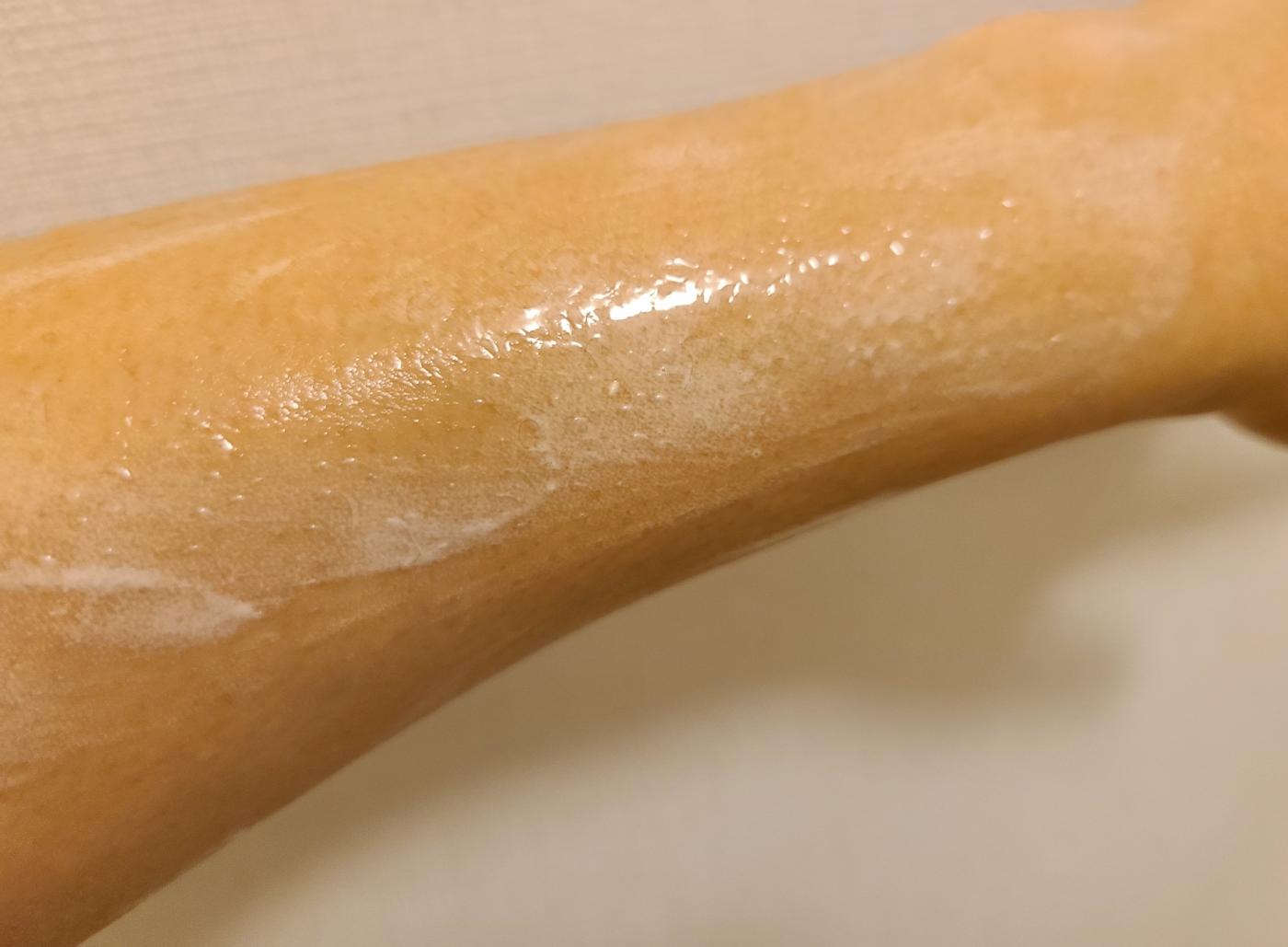 確かに泡立たないのですが、オイルならではの滑りや伸びがあり、肌をマッサージしながら体を綺麗にすることができます。