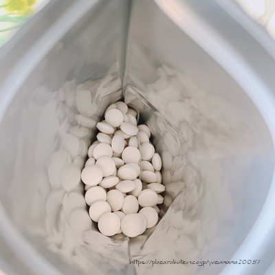 1日の摂取量は8粒と少々多いのですが、厚みがあまりなく比較的小粒なので