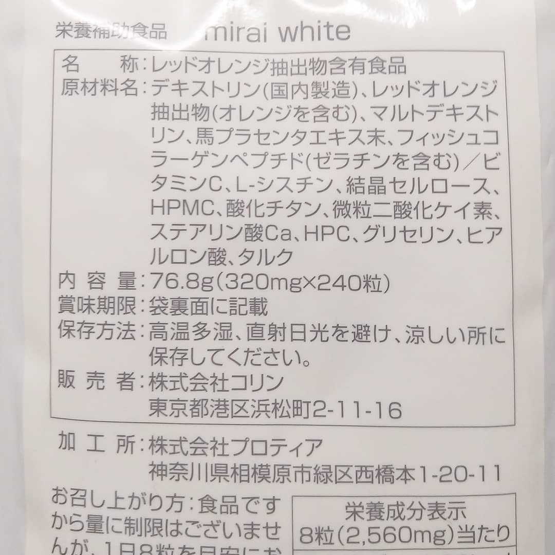美白サプリ mirai white お試しさせていただきました(*´꒳`*) 6種類の美白成分 ①L-シスチン ②ビ...