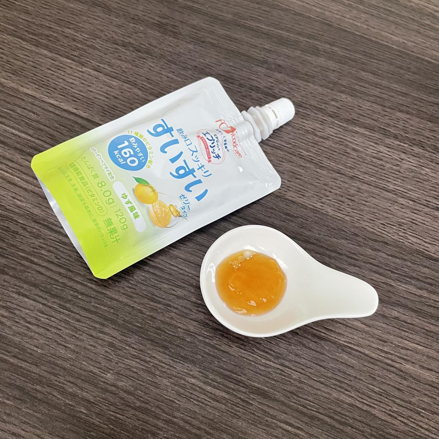 すいすいは、半透明のゼリー状で、こちらもしっかりとした甘みがありました。こちらは、一袋で160kcal摂取できます。