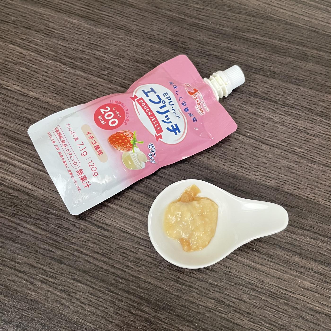 エプリッチは、ミルクのようなとろみのある食感です。甘みも強く、一袋で200kcal摂取できます!