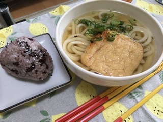 大好きな赤飯も炊いてオリジナルきつねうどん定食を作って食べました〜??