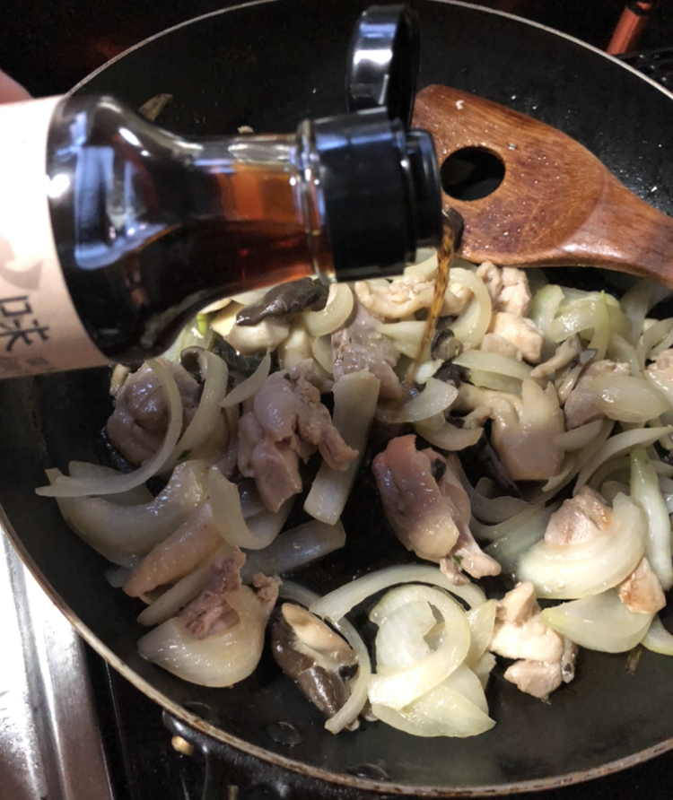 あとは、鶏肉と玉ねぎ、霜降りひらたけの炒め物に使わせて頂きました。