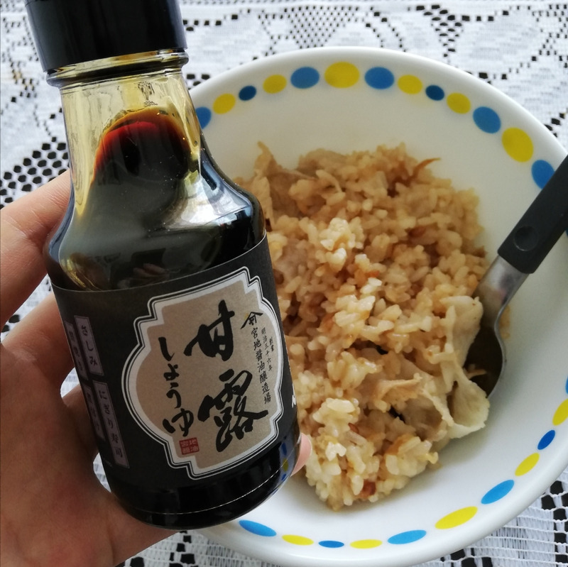 ここに甘露しょうゆをかけています。
