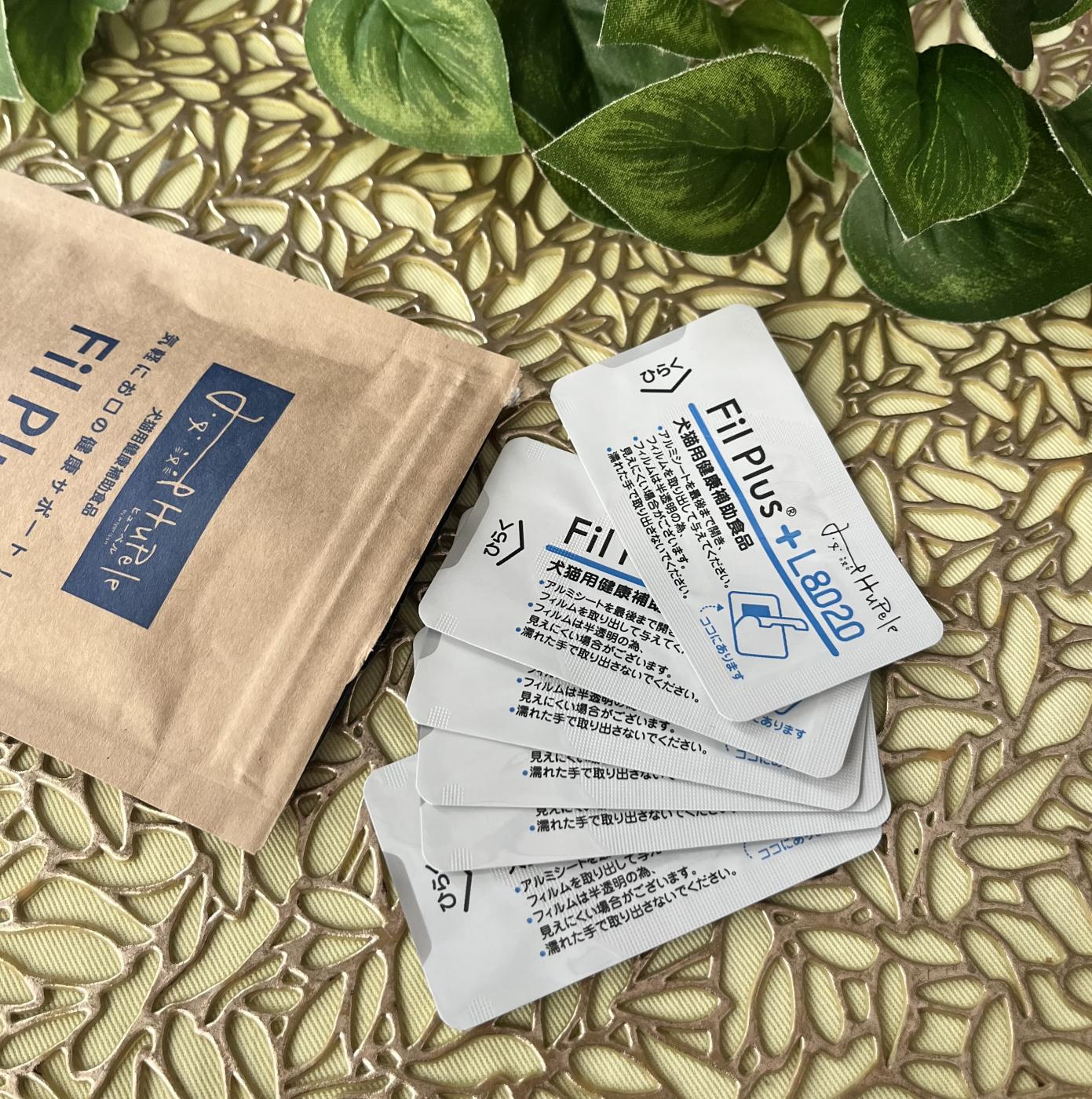 コエタスのモニターキャンペーンでもらったHuPele【犬猫用健康補助食品】Fil Plus®+L8020(フィルプラス+L8020)のレビューです。