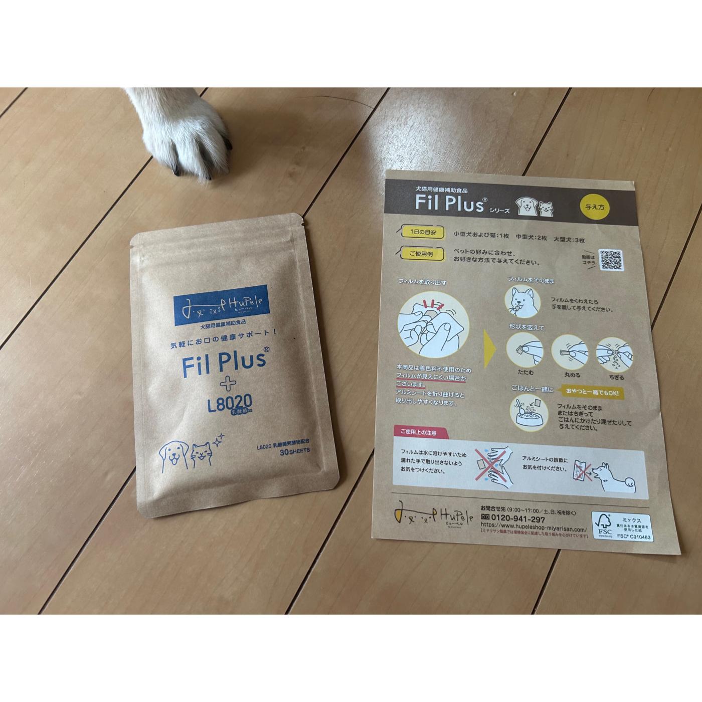 コエタスのモニターキャンペーンでいただいた『HuPele【犬猫用健康補助食品】Fil Plus®+L8020(フィルプ...