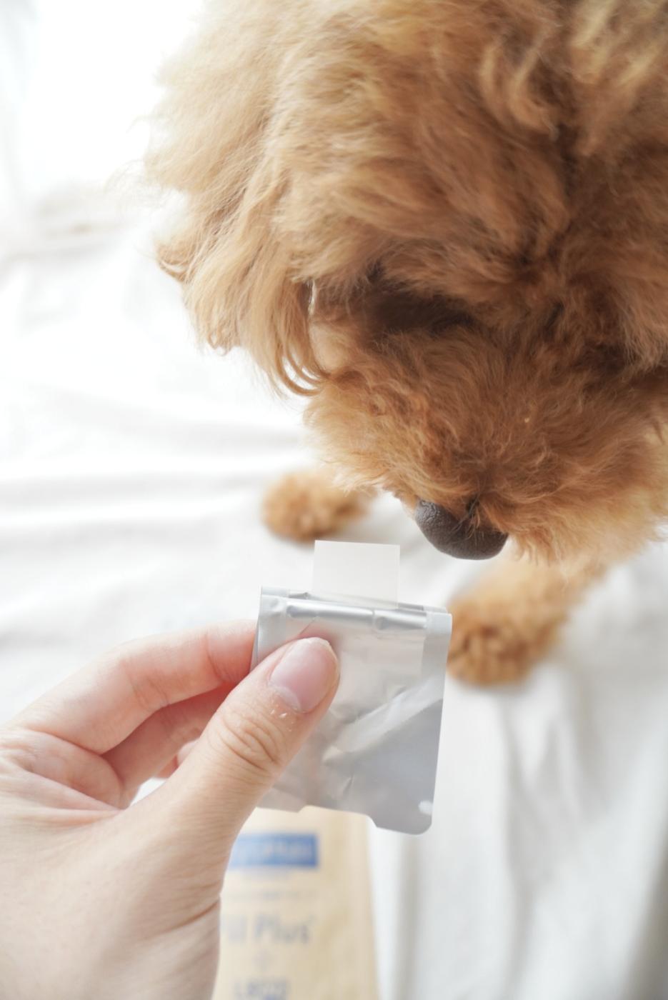 L8020乳酸菌の発酵エキスが配合されていて、お口の健康が気になるワンちゃんネコちゃんの健康サポートにおすすめのサプリメントとの事で早速愛犬のトイプードルにあげてみました。封を開けると薄いシート状のサプリンメにびっくり!個包装タイプなので衛生的で、持ち運びにも便利だと思います。フィルムも剥がしやすくて簡単に開けることが出来ました。シート状のタブレットは、ちぎったり曲げたりすることも可能です。チーズ風味の味が付いているからか、はじめは薄いシートに戸惑っていました愛犬も、美味しそうにパクッと食べてくれました。普段は歯磨きが苦手なので苦労していましたが、L8020乳酸菌配合で口の健康サポートができるは嬉しいポイント。お値段もそこまで高くないので、手軽に続けやすいと感じました。