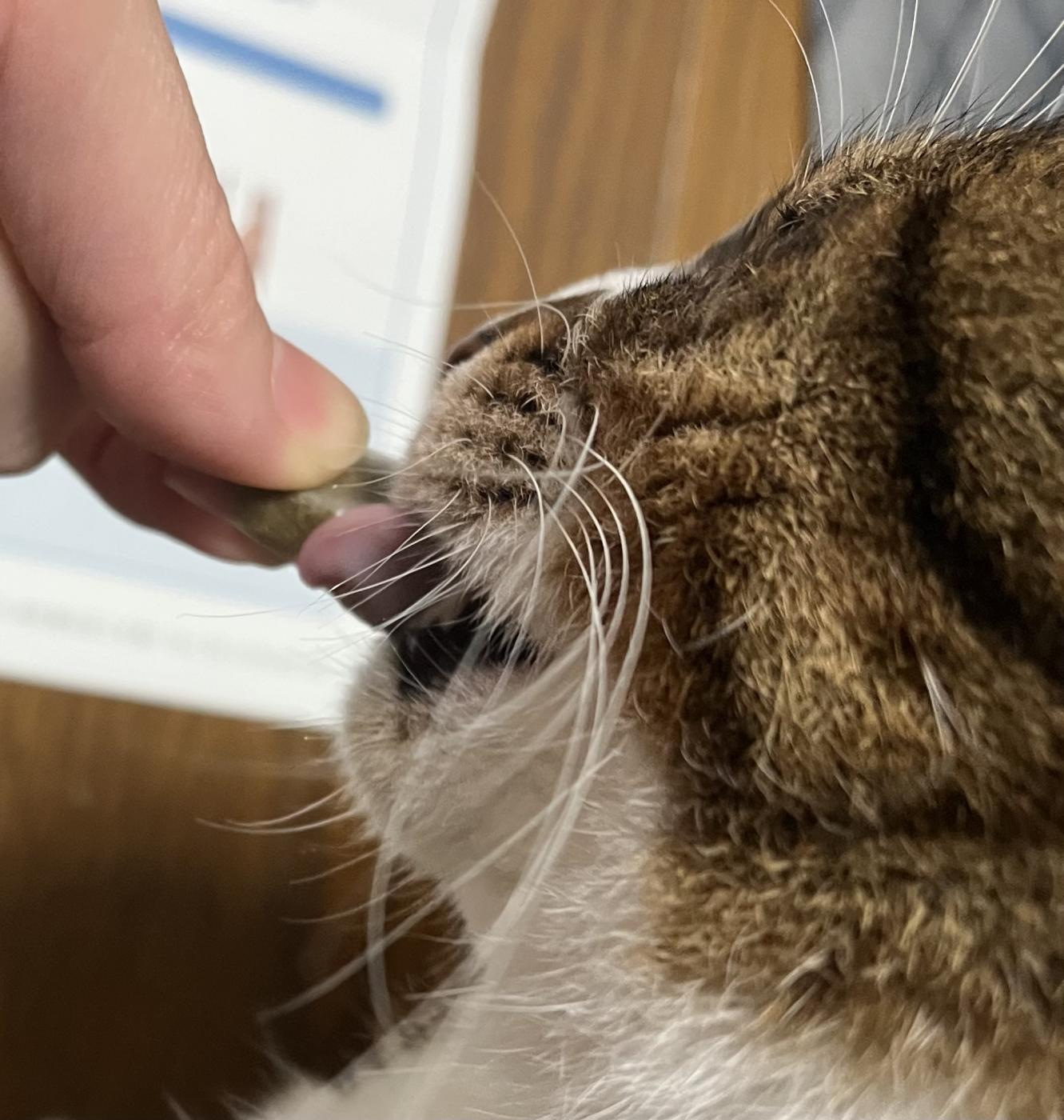 最初は「フィルムタイプのお口ケアって本当に効果あるの?」と半信半疑でした。うちの猫は警戒心が強く、初めて与えたときは匂いを嗅いだだけで食べてくれず…。でも、おやつに軽く巻き付けてあげたらパクッと食べてくれました!このフィルム、とても薄くて口の中で自然に溶けるので、ぺろぺろしているうちにおやつにくっついてしまう感じです。無理に口を開けさせたりせずにケアできるのが本当に便利。チーズ風味なので、においも強すぎず食べやすいようです。続けているうちに、前より口臭が気にならなくなってきた気がします。粒タイプのサプリや歯磨きが苦手な子にも向いていると思います。1日1枚でOKという手軽さも続けやすいポイント。うちは夜ごはんのあとにおやつと一緒にあげる習慣にしています。お口ケアを気軽に始めたい人にはぜひ試してみてほしいです。