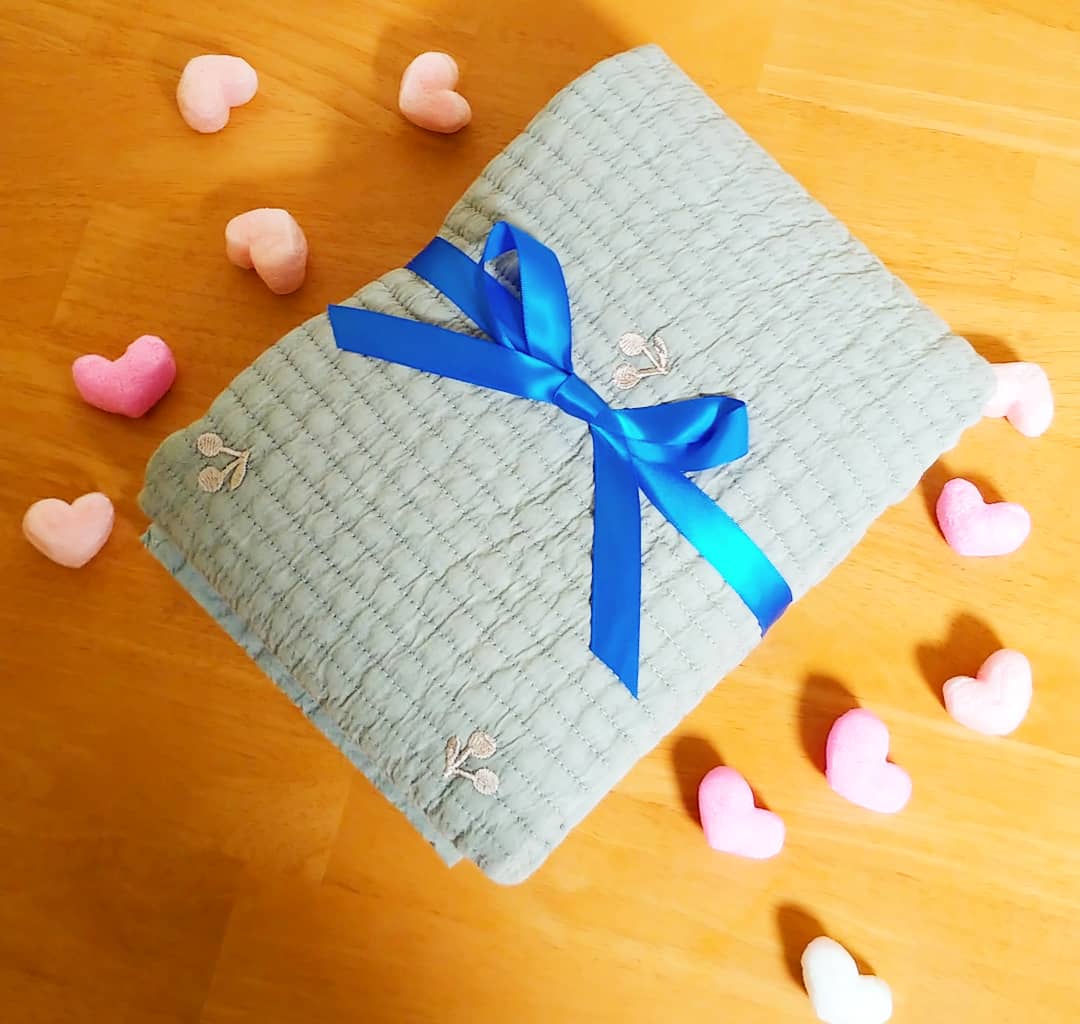 フィトンチッド加工の特性上ハーブや森林のような香りがします✨生地をこすり合わせると更に香りが出てくるのが特徴✨→とっても落ち着く香りがしますよ〜♥こちらを掛けて私がお昼寝したい!!