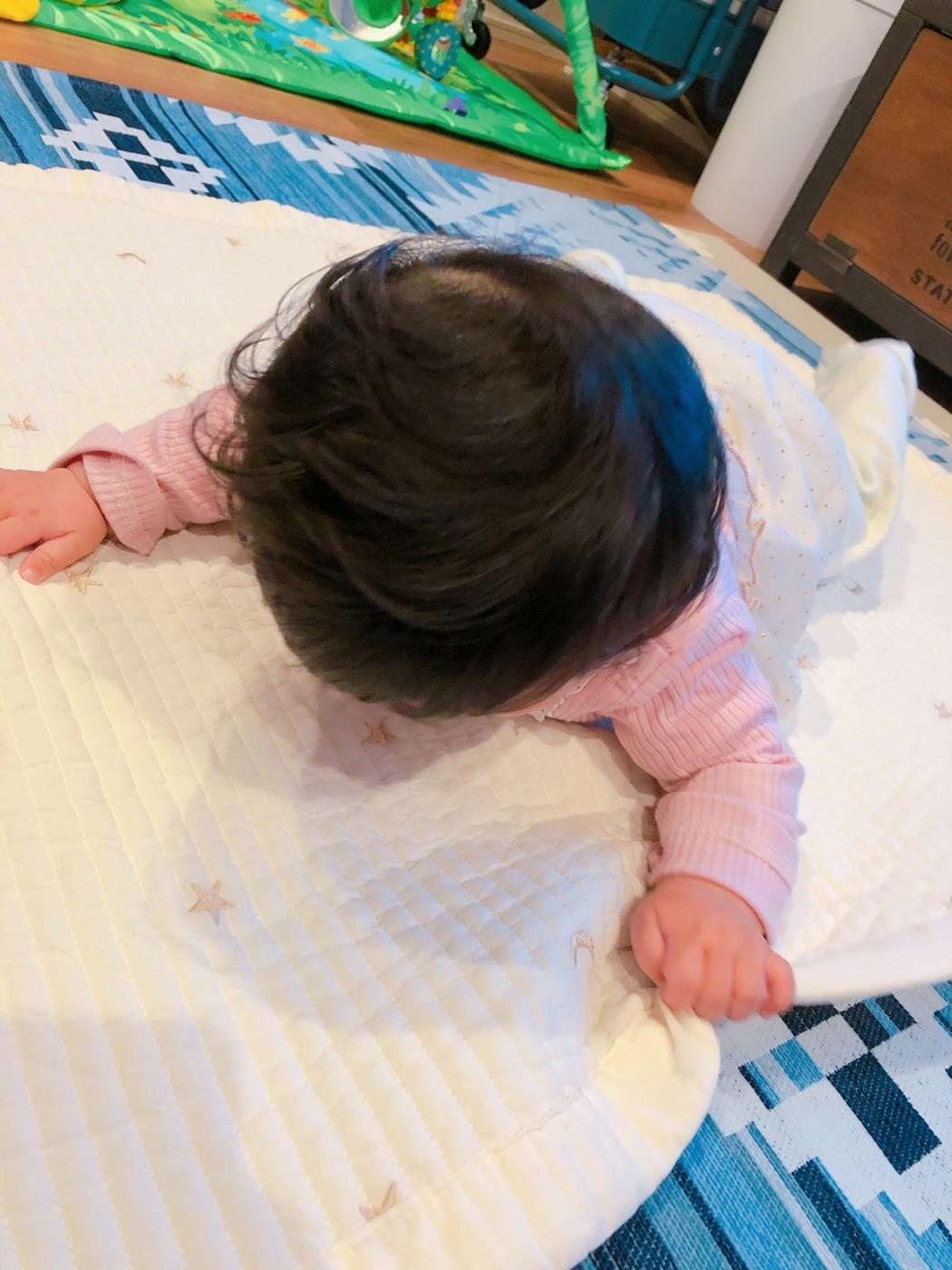 絶賛寝返り中の娘!なんでも口に入れてしまう年頃なので、丸洗いできる事が大助かり!床に敷いても、こちらのサイズだったらソファーで使用しても良さそう!