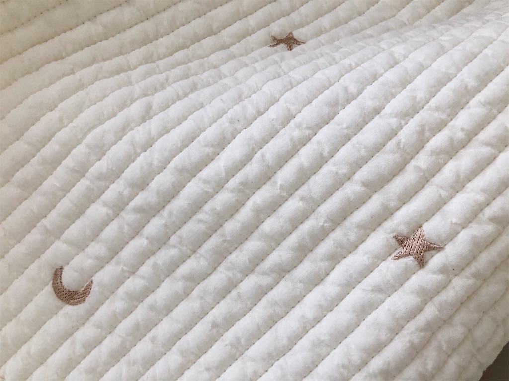 綿100%のものが多く、表面にはキルティング加工がされていて、手触りが良いものが多いです。