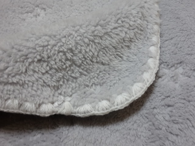グレーは同色の刺繍糸でかがってあるけど、ピンクは白で、アイボリーはグレーで縁取りしてるみたい。