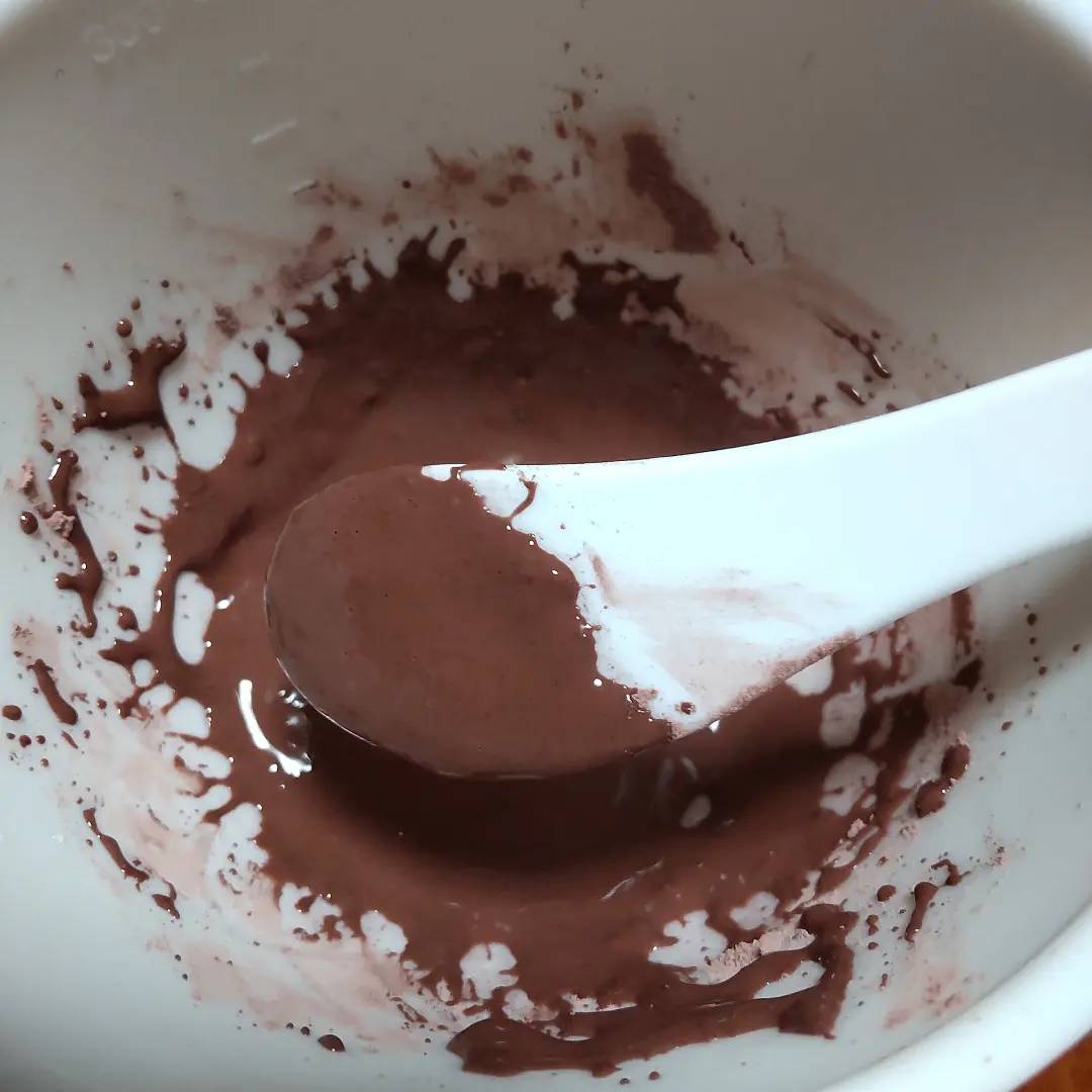 パウダーは1包みごとの個包装。容器に入れるとチョコレートのいい香りがしました。精製水を混ぜると、とろみが出てきてチョコレートをとかしたみたい!