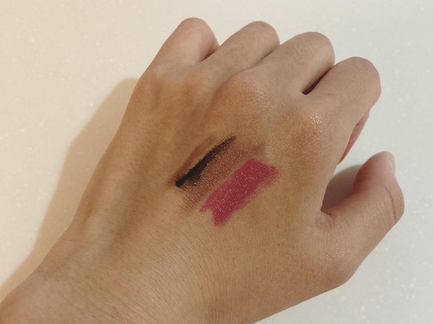 手の甲にアイブロウ・アイシャドウ・アイライン・口紅を引いて、いざ検証!