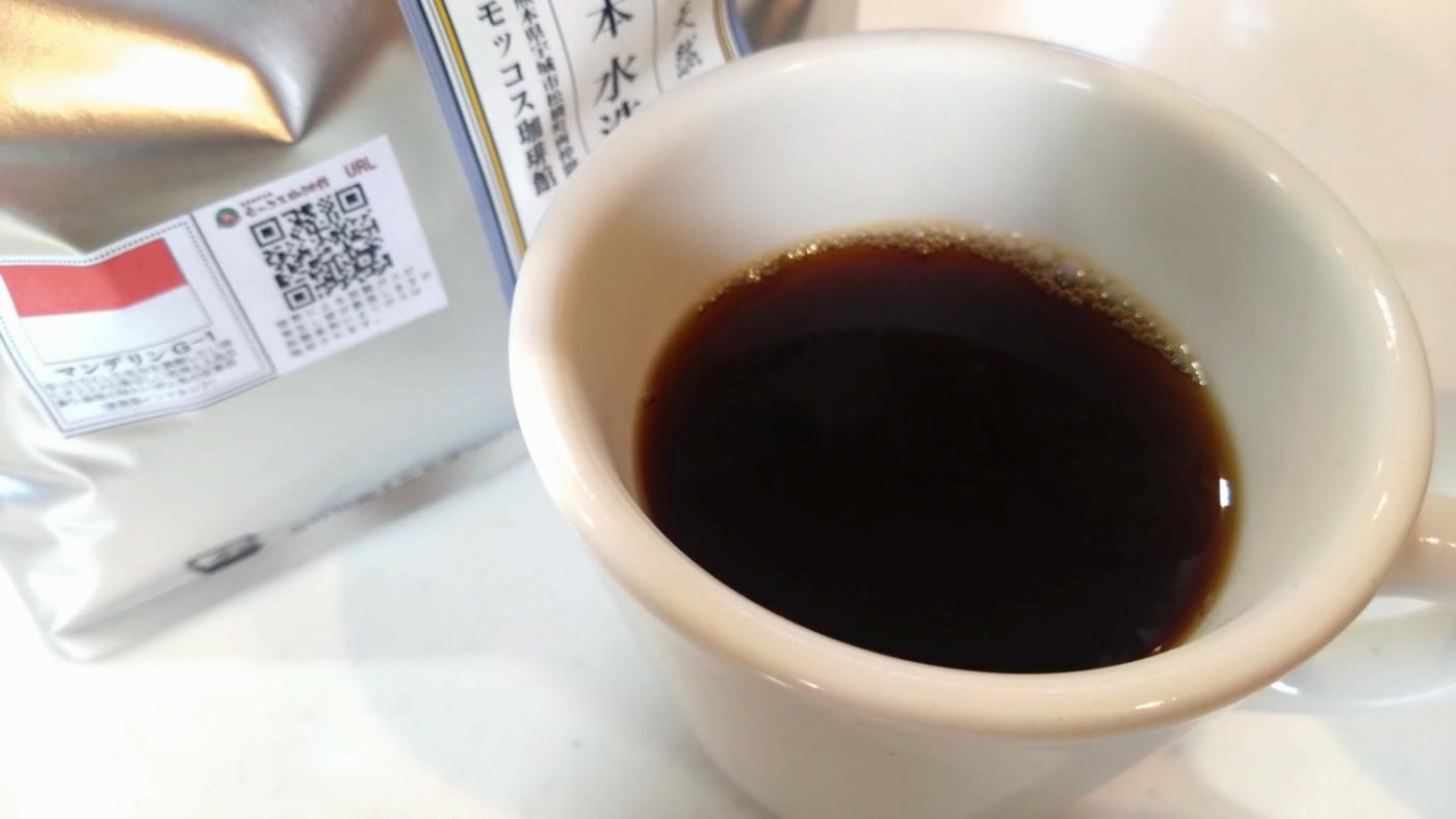 「マンデリン」は深いコクのある苦みがクセになる高級品種なんだそうで、光沢のようなつやつや感がありました。
