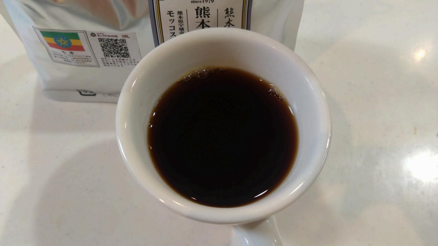 「モカ」はまず、透きとおった口当たりを感じてから、しっかりした苦みがあとからやってくる印象でした。