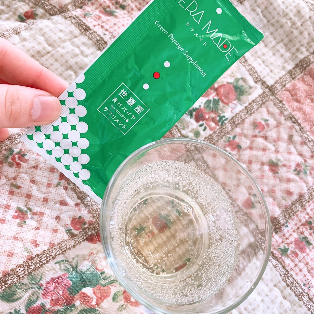 今回はセラメイド(青パパイヤの酵素ドリンク)をお試しさせていただきました?