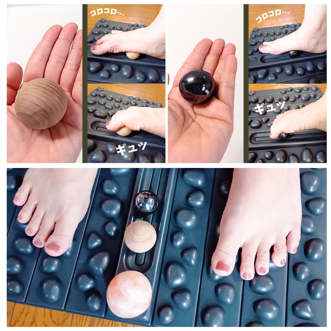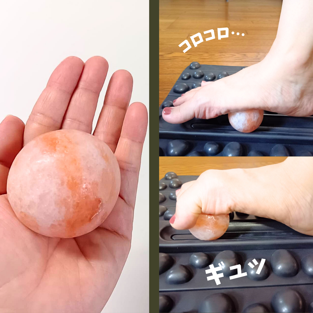 私は在宅ワーク中やオンラインゲームの待ち時間に、ソルトボールをコロコロ転がしたり、ウッドボールを足で握ったりしてリフレッシュしてるよ😊