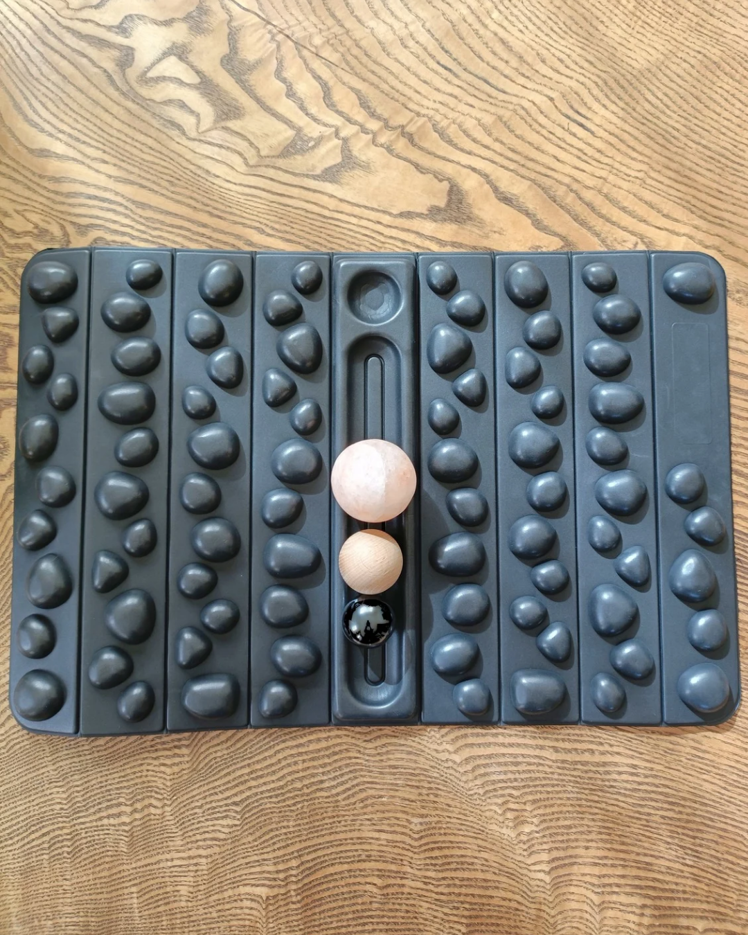 凸凹マットのMOON MATは硬めのEVA素材で両足で乗っても痛くならないって書いてあったんだけど、確かに足つぼマットよりソフトで、見た目以上に痛くなくて本当に心地よい感じ!足裏ボコボコになるけどね笑