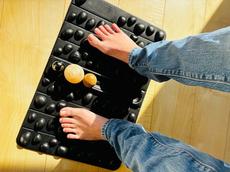 マットは硬すぎないので足裏が足つぼマッサージみたいに激痛じゃなく、ほどよい刺激という感じになっているので、普段あんまり運動とかマッサージとかしないんだけど大丈夫かな?って思っている人にも気持ちがいいレベルだと思います。私は温泉とかにある足つぼマットは痛すぎて歩けないレベルだけど、これは踏みしめられます!!