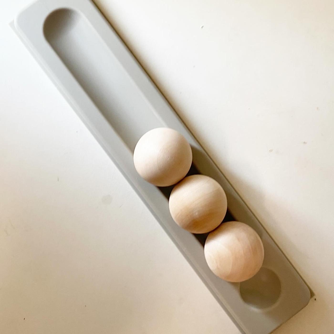 シリコン製のマットと、木でできた3つのウッドボールを組み合わせた見慣れないアイテム。