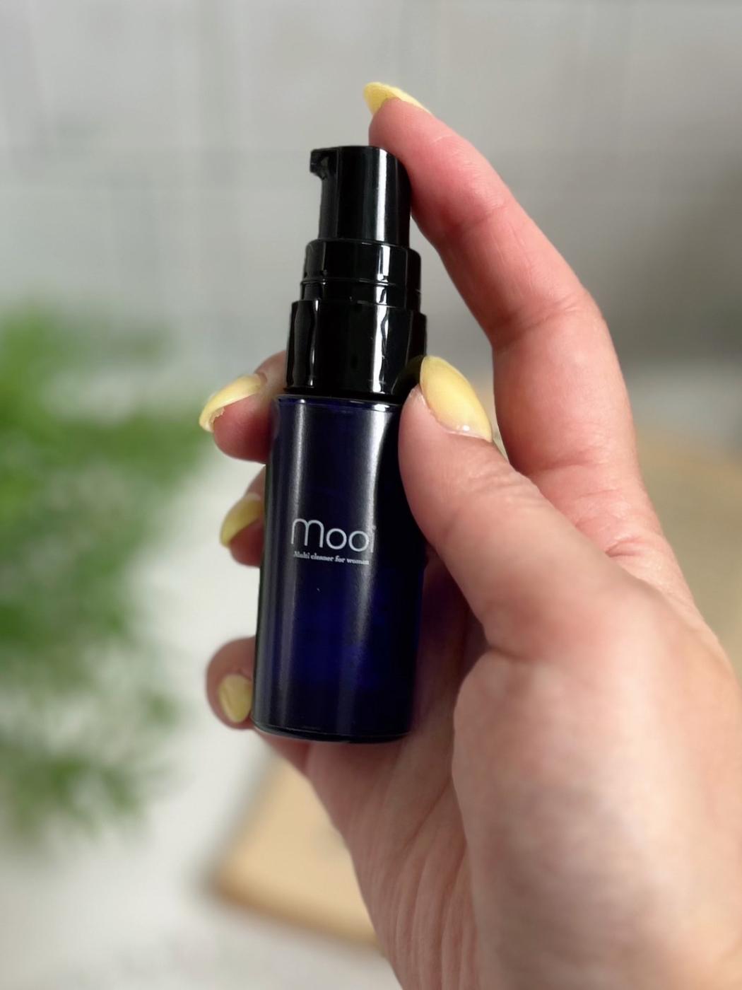 mooi(モーイ)のレビューです。 ネイビーの手のひらサイズの容器に入っています。 ふとした汚れって、...