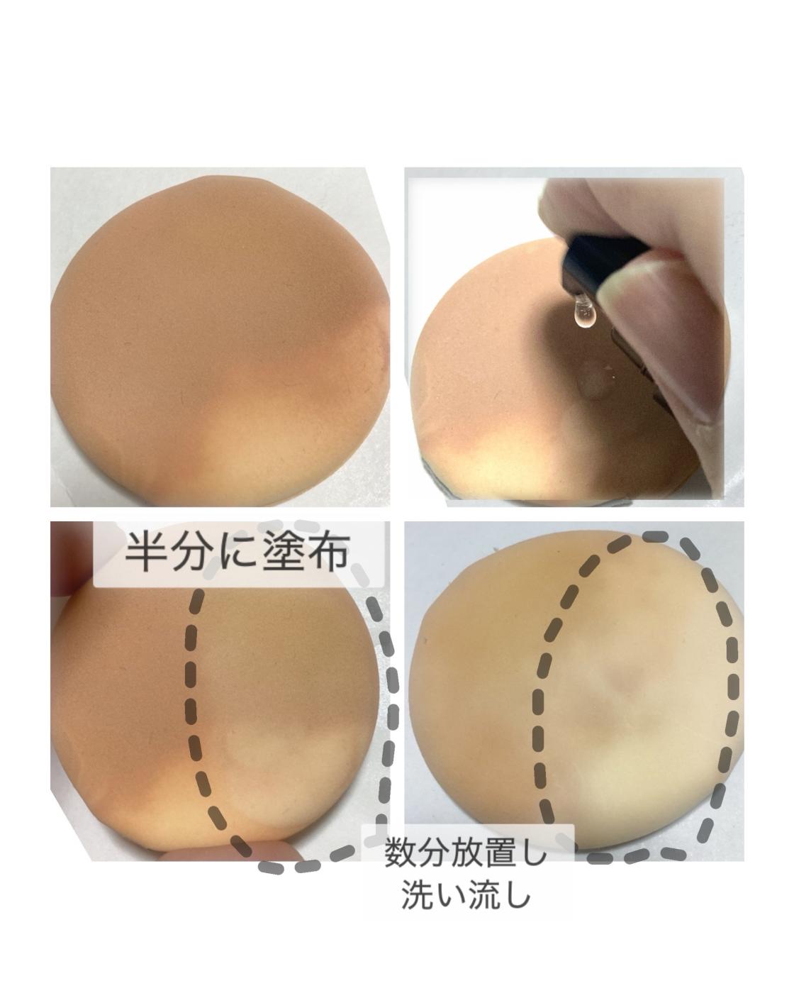 今回はファンデーション用のスポンジの汚れに使ってみました(変化がわかりやすくなるよう片側に重点的にファンデをつけてみた)
