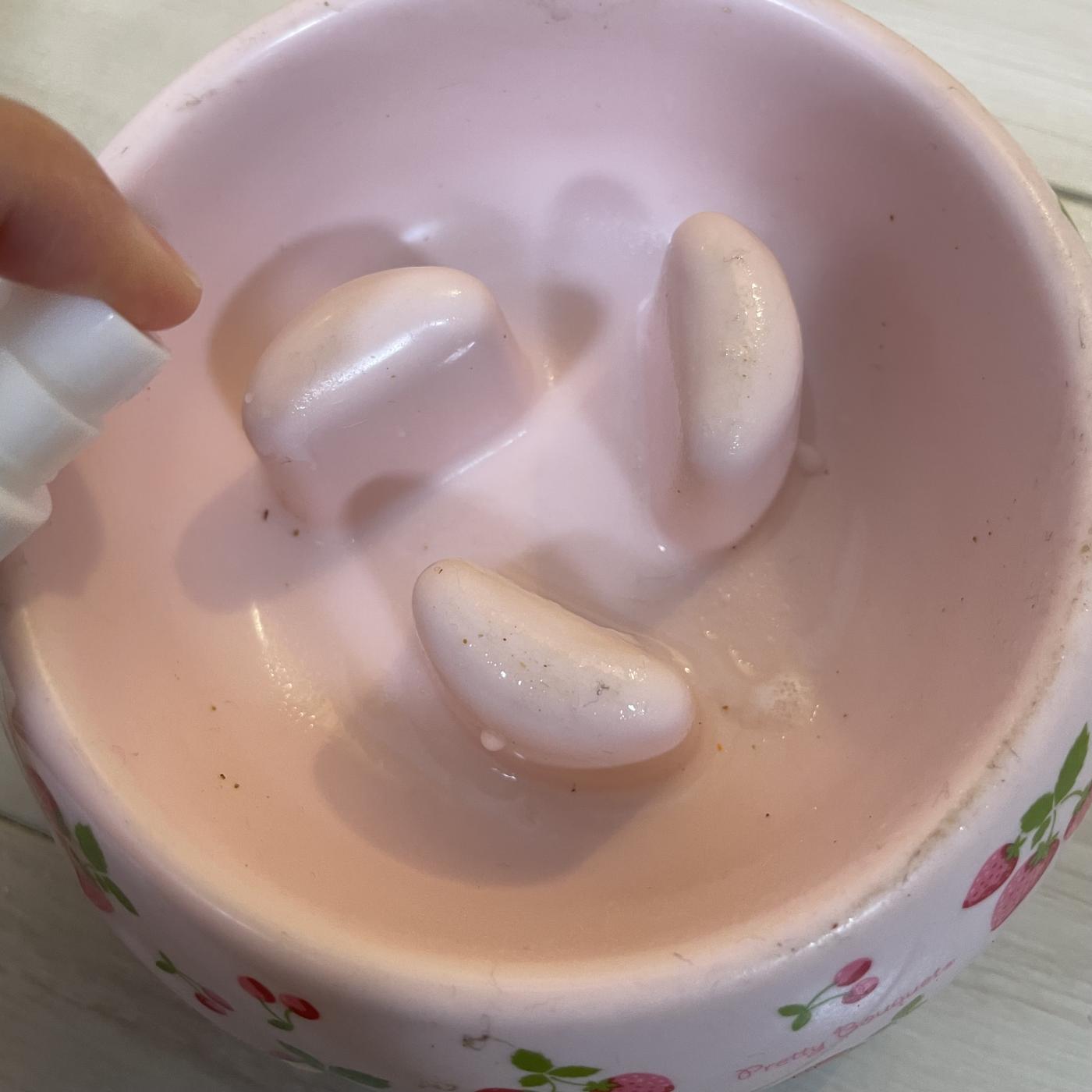 粒子の細かいミストタイプは、布製のベッドや毛布はもちろん、ペットのぬるつきやすいお皿にも使いやすくて便利です。